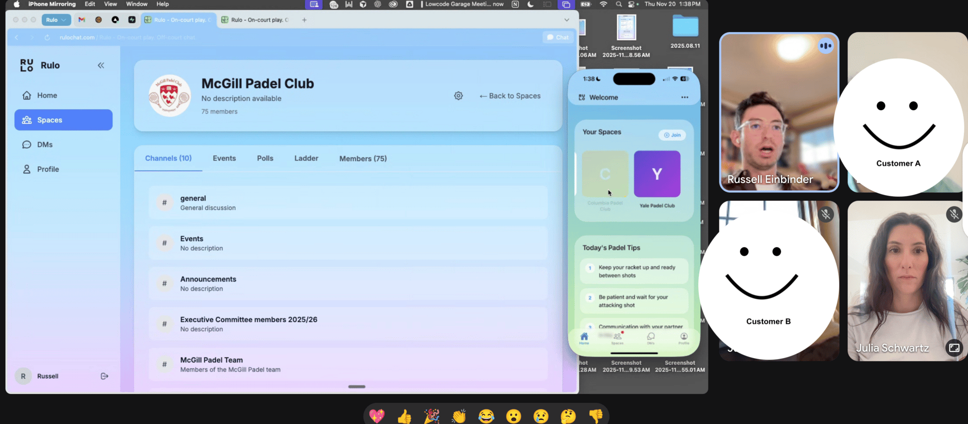 Walking customers through Rulo, one of our community fitness apps. As you can see from their smiling faces, they loved it.
